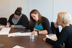Daartoe leverde verschillende business units in Dordrecht op 11 oktober jl. ook een bijdrage door hun deuren open te zetten en de dames te verwelkomen om te komen ervaren en samen te leren. Eerst werd er op deze dag kennisgemaakt met een aantal heel verschillende vrouwen uit onze organisatie, zoals onze receptioniste Els, directiesecretaresse Ynske, marketing en communicatie expert Myke, technische secretaresse Esther en secretaresse Odette. Hier en daar werd er onwennig gesproken over: wat doe jij voor werk, hoe gedraag je je, welke verantwoordelijkheid draag je en welke weg heb je afgelegd om hier te komen? Muriel en Hanneke zorgden voor een inhoudelijk deel: hoe presenteer je jezelf op internet? Hoogtepunt van de dag was toen de deelneemsters zichzelf en hun doelen presenteerden. Muriel, Odette en Hanneke gaven de vrouwen feedback en concrete tips.